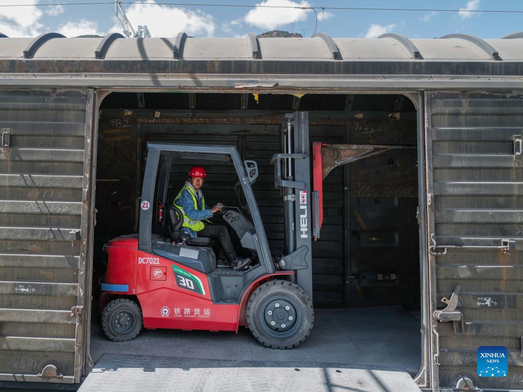 Miejscowy z Penpa pracuje na stacji kolejowej Nyingchi. [Fot.Xinhua/Lodro Gyatso]