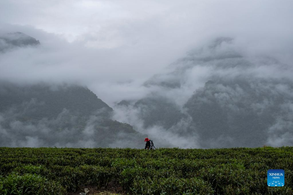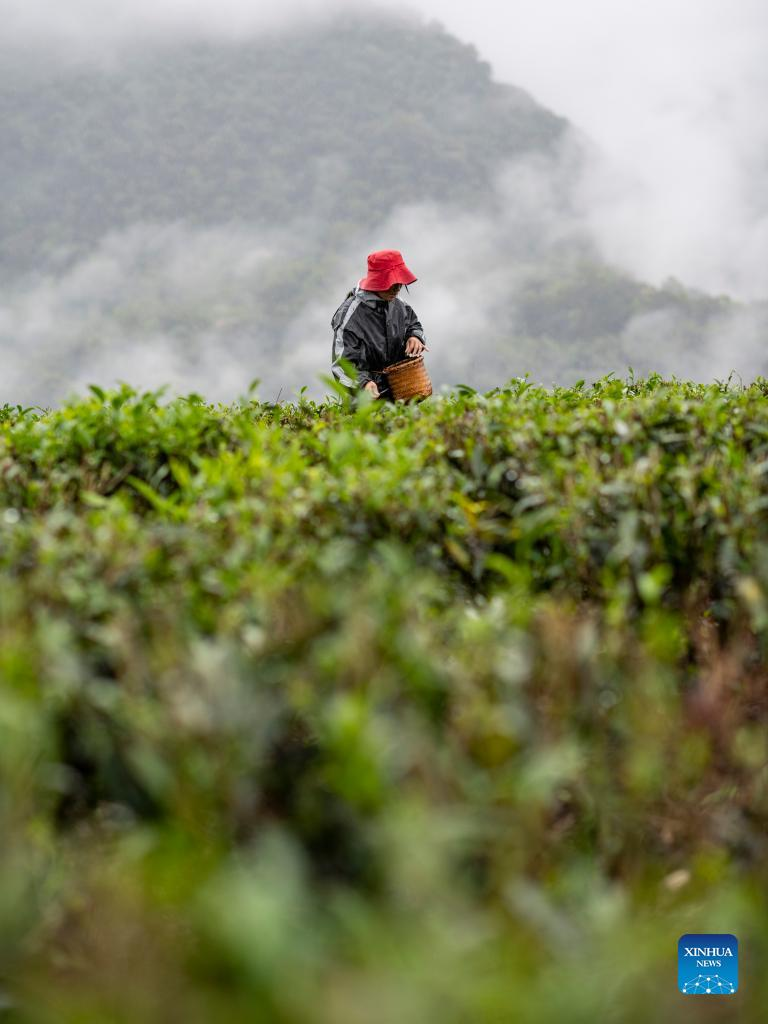 Mieszkaniec zbiera liście herbaty w wiosce Hezha gminy Dêxing w powiecie Mêdog Tybetu. [Zdjęcie: Sun Fei/Xinhua]