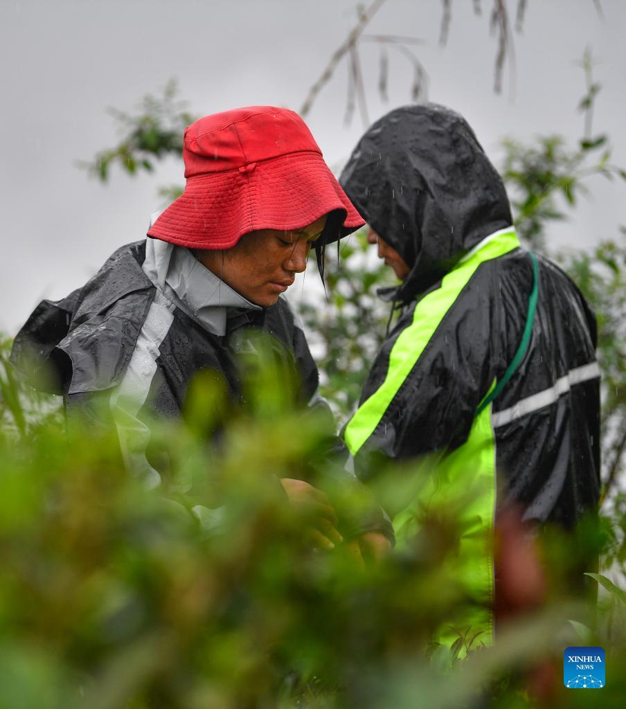 Mieszkańcy zbierają liście herbaty w wiosce Hezha gminy Dêxing w powiecie Mêdog Tybetu. [Zdjęcie: Jigme Dorje/Xinhua]