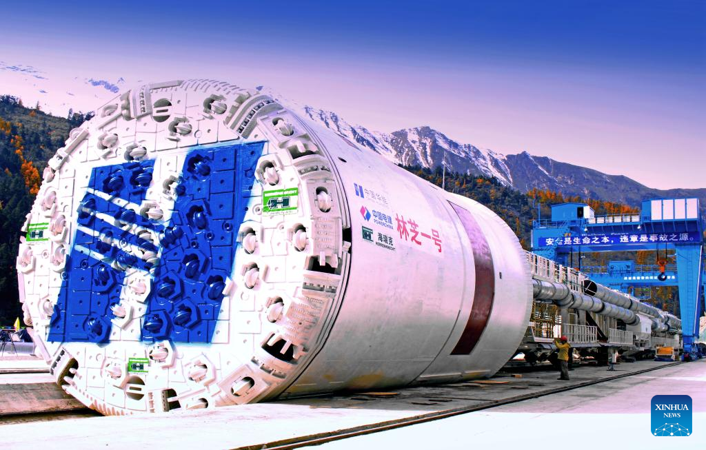 Zdjęcie zrobione 29 października 2015 r. - specjalistyczna maszyna do wiercenia tuneli (TBM) jest gotowa do budowy tunelu Doxong Pass na autostradzie łączącej gminę Pad w prefekturze Nyingchi z powiatem Medog w Tybetańskim Regionie Autonomicznym. Droga o długości 67,22 km łączy gminę Pad w prefekturze Nyingchi i powiat Medog. Jest to drugie połączenie drogowe do Medog, po pierwszym łączącym powiat z gminą Zhamog w powiecie Bomi.