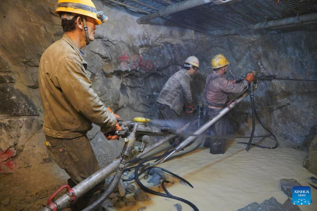 Robotnicy na budowie tunelu Laohuzui na autostradzie łączącej gminę Pad w prefekturze Nyingchi z powiatem Medog w Tybetańskim Regionie Autonomicznym, 9 lutego 2021 r. Droga o długości 67,22 km łączy gminę Pad w prefekturze Nyingchi i powiat Medog. Jest to drugie połączenie drogowe do Medog, po pierwszym łączącym powiat z gminą Zhamog w powiecie Bomi.