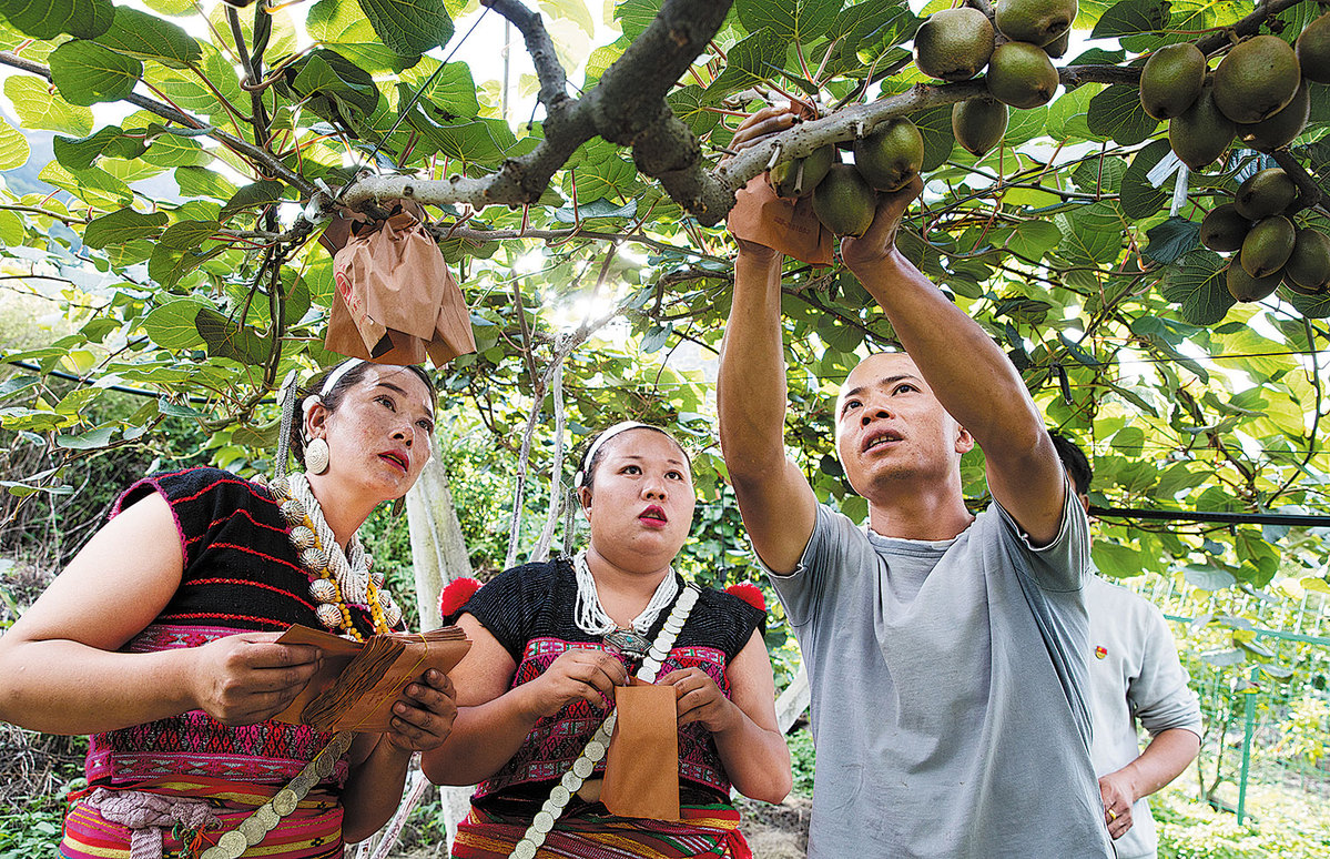 Powiat Zayul w Tybetańskim Regionie Autonomicznym [Xizang]. Specjalista ds. marketingu pokazuje miejscowym gospodyniom, jak pakować uprawiane przez nie owoce kiwi. [Zdjęcie/Xinhua]