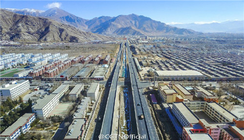 Północna części obwodnicy Lhasy została oddana do eksploatacji próbnej. Droga łączy lotnisko Lhasa Gongkar z trzema autostradami na południu a także przecina linię kolejową Qinghai-Tybet. [Zdjęcie: Xinhua]