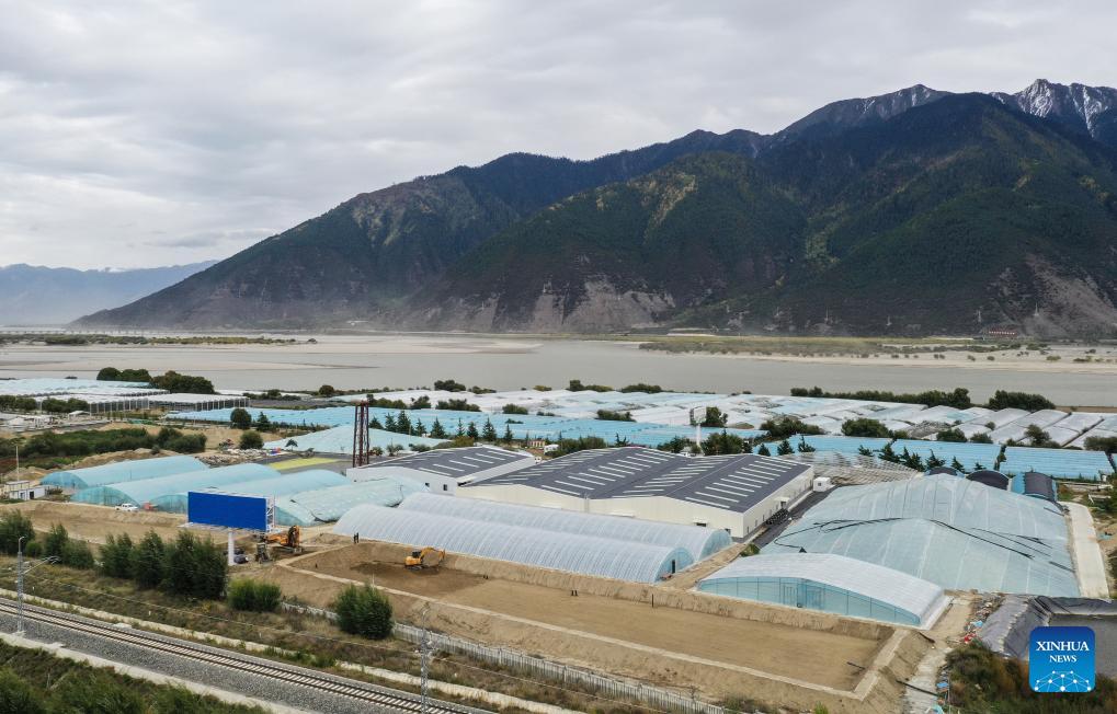 Zdjęcie lotnicze z drona wykonane 24 października 2024 r. przedstawia widok parku naukowo-technologicznego wyżynnej hodowli ryb Milin Farm w Nyingchi, w Tybetańskim Regionie Autonomicznym [Xizang] w Chinach. Gospodarstwo Milin Farm w Nyingchi przy wsparciu fachowców z prefektury Zhuhai w południowych Chinach rozwija wyżynną hodowlę ryb od 2022 r. Opierając się na sprzyjających warunkach naturalnych Gospodarstwo utworzyło park naukowo-technologiczny wyżynnej hodowli ryb i aktywnie poszukuje odpowiedniego modelu rozwoju lokalnej branży rybnej. Obecnie w gospodarstwie znajduje się ponad 50 000 kilogramów ryb. (Foto: Xinhua/Li He)