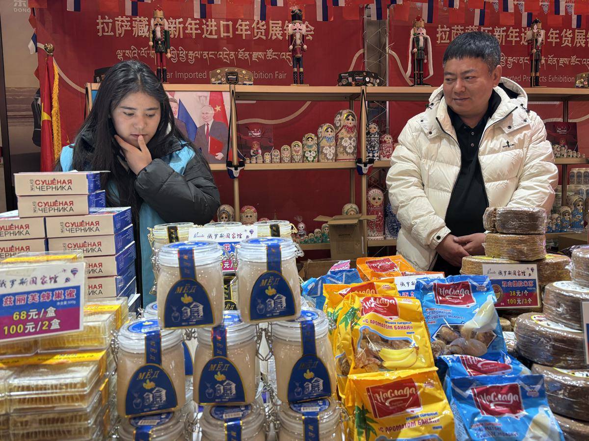 W styczniu w Lhasie, stolicy Tybetańskiego Regionu Autonomicznego [Xizang], odbyły się targi produktów importowanych, na których zaprezentowano różne produkty importowane. [Zdjęcie Palden Nyima/chinadaily.com.cn]