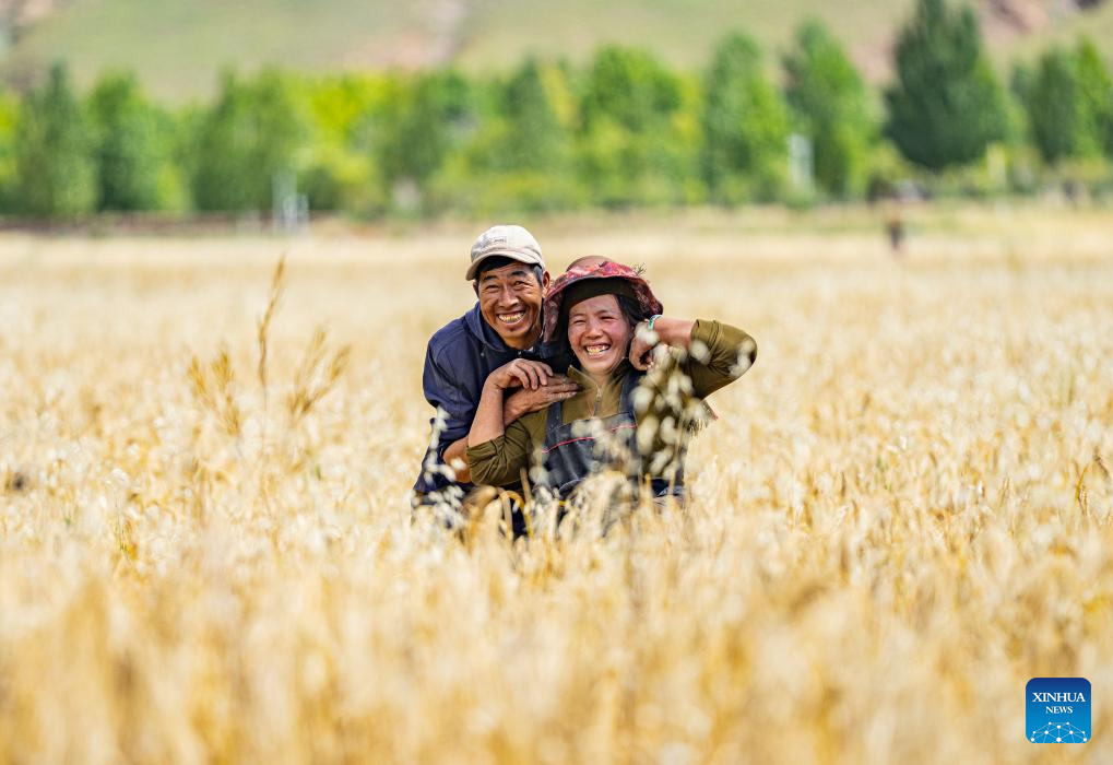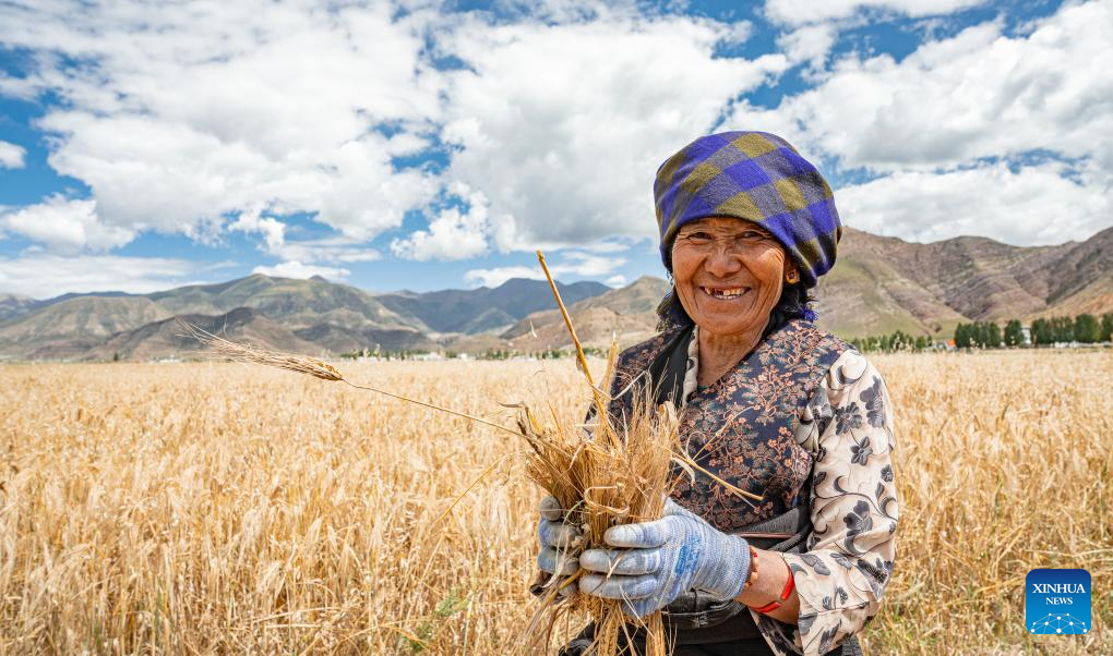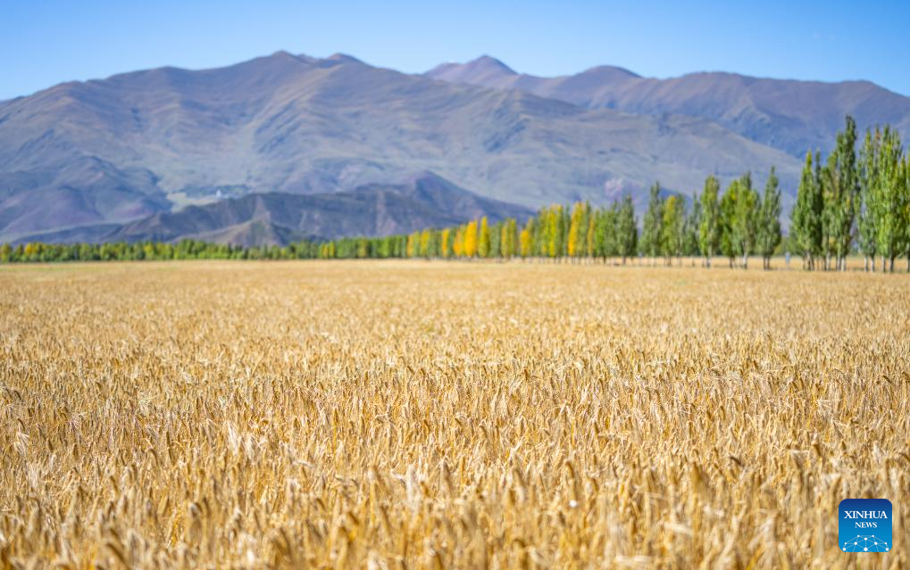5 To zdjęcie z 23 września 2025 r. przedstawia pole jęczmienia górskiego przeznaczonego do zbioru w powiecie Lhunzhub w prefekturze Lhasy, w południowo-zachodnim Tybetańskim Regionie Autonomicznym [Xizang] w Chinach. (Foto: Xinhua/Tenzin Nyida)