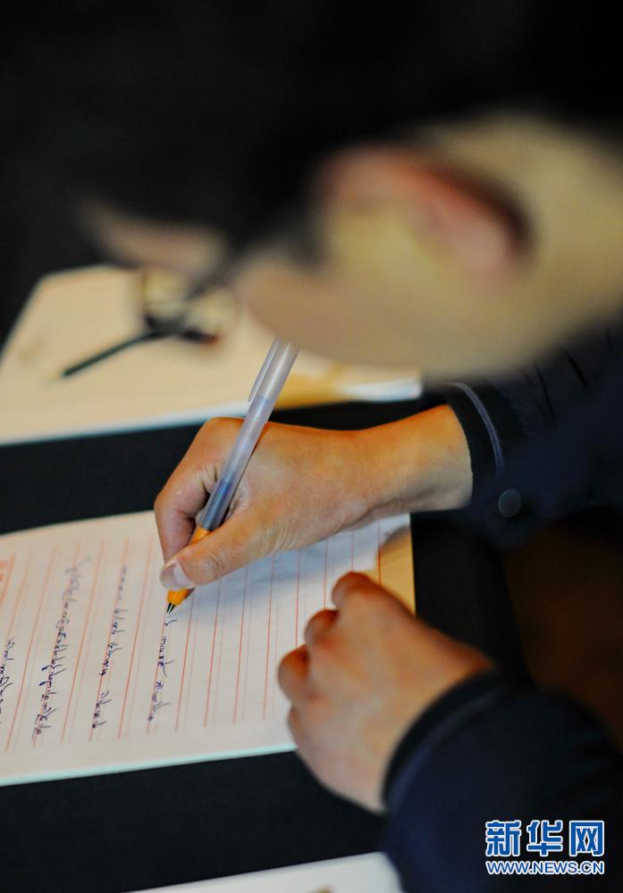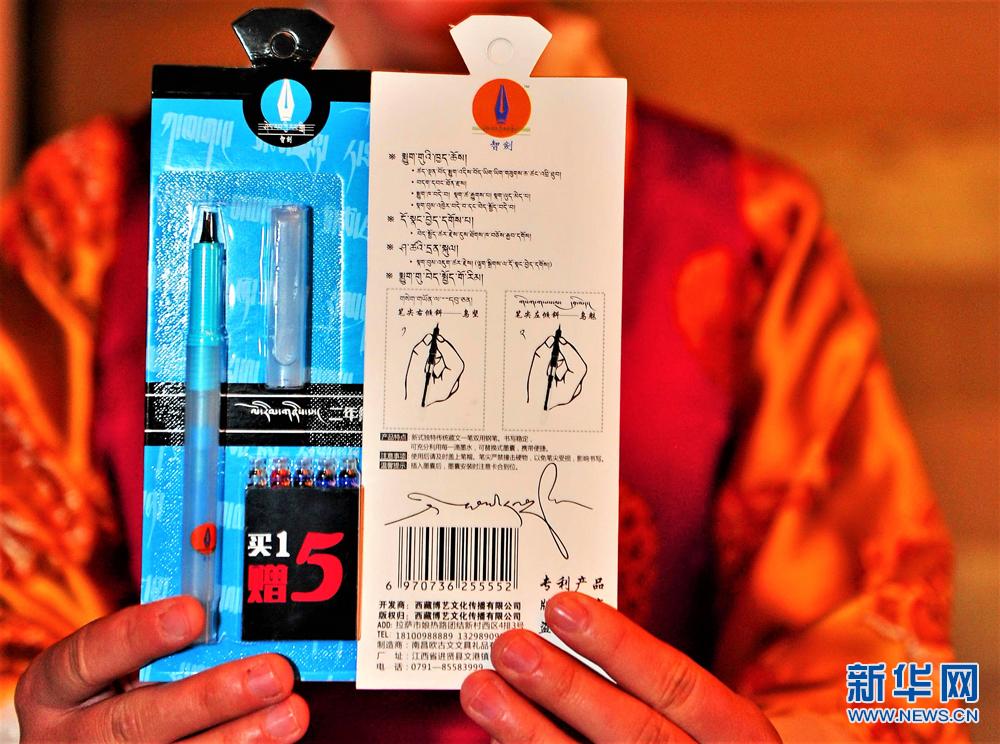 Na fotografiach powyżej pracownica prezentuje wzory opatentowanych tybetańskich długopisów na konferencji prasowej podczas premiery produktu. W dniu 31 grudnia ub.r. zaprezentowano w Lhasie opatentowane specjalne tybetańskie długopisy, długopisy są tak zaprojektowane, aby jak najlepiej mogły odwzorowywać ręczne pismo w alfabecie tybetańskim. [Xinhua / Zhang Rufeng]