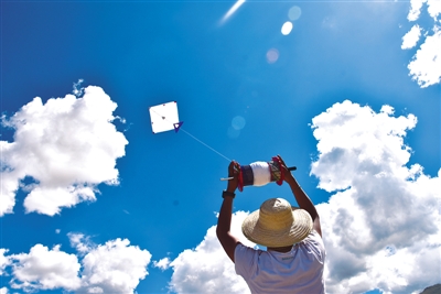 Fan tybetańskich latawców puszcza swojego latawca nad rzeką Lhasa. [Foto/China Tibet News]