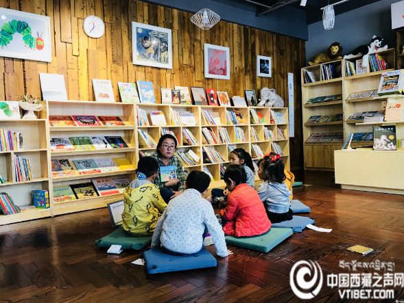 Dzieci słuchają w bibliotece opowiadań. [Zdjęcie / VTIBET.com].