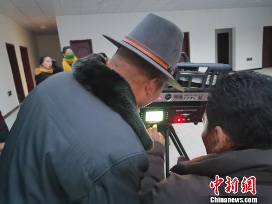 Qila(z lewej) i jego asystenci testują sprzęt przed seansemg