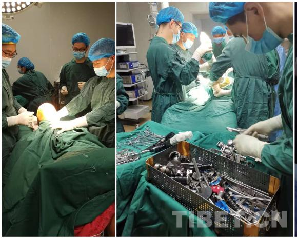 Na zdjęciu zespół Powiatowego Szpitala Ludowego w Luhuo przeprowadzający operację pod kierunkiem zaproszonych ekspertów.