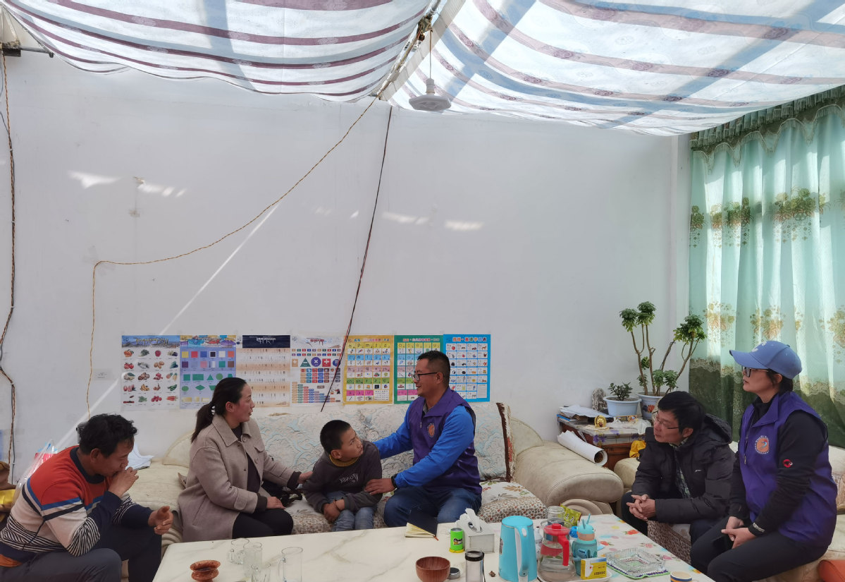 Eksperci i instruktorzy z Uniwersytetu Sportowego w Tiencin z wizytą u rodziny dziecka z porażeniem mózgowym. [Zdjęcie dostarczone do chinadaily.com.cn]