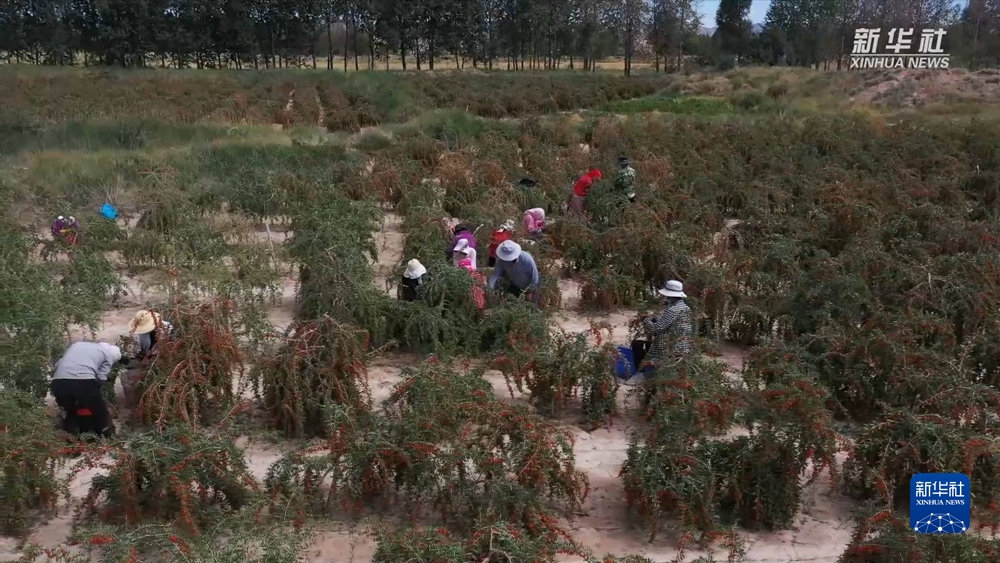 Podczas złotej jesieni w powiecie Dulan, w Mongolskiej i Tybetańskiej Autonomicznej Prefekturze Haixi w prowincji Qinghai, położonej w południowo-wschodniej części dorzecza Qaidam, na powierzchni ponad 200 000 mu rozpoczęto zapowiadające się jako rekordowe zbiory owoców kolcowoju chińskiego znanego jako jagody Goji .