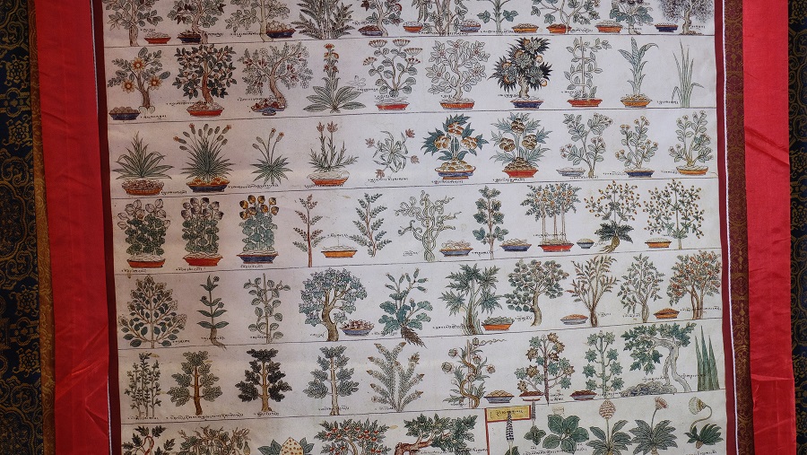 Thangka przedstawiająca typowe tybetańskie zioła lecznicze. /CGTN