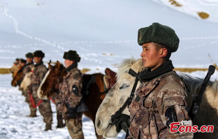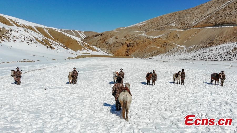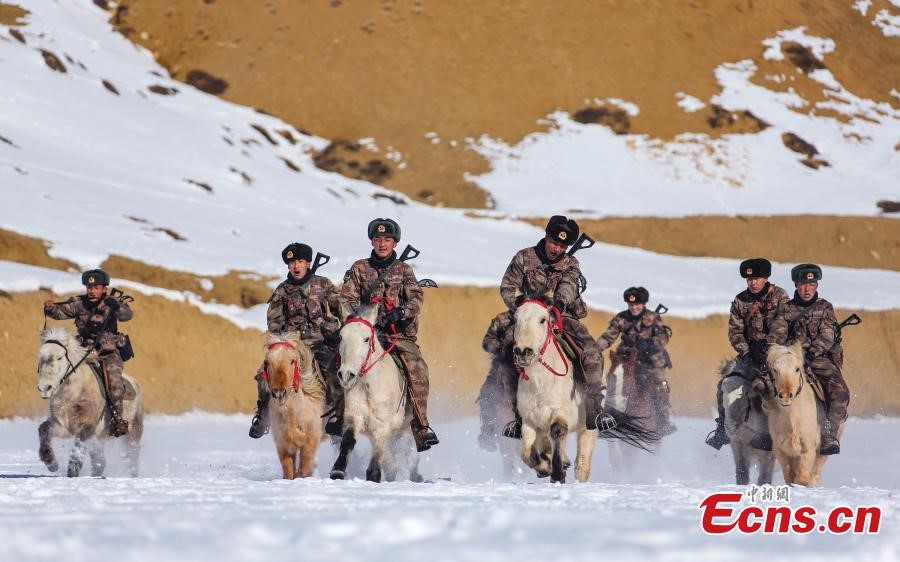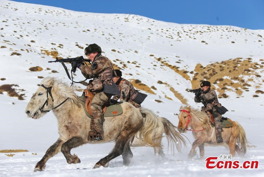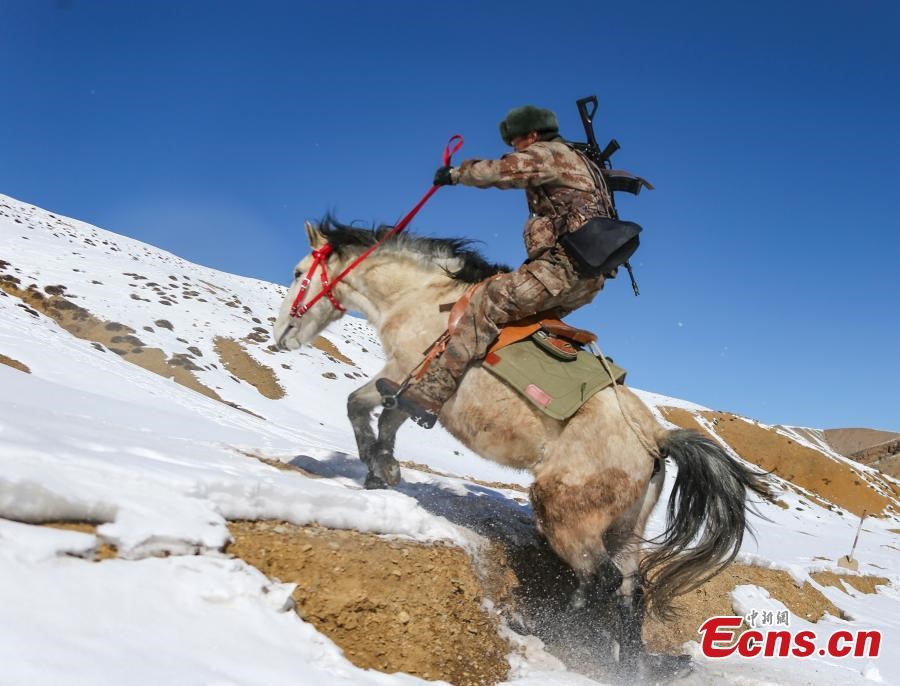 10 marca policjanci z prefektury Ali w TRA odbyli kolejne ćwiczenia na koniach. Sesja treningowa została przeprowadzona na wysokości około 4600 metrów nad poziomem morza, gdy temperatura spadła do minus 25 stopni Celsjusza. (Fotografie: China News Service / Liu Xiaodong)