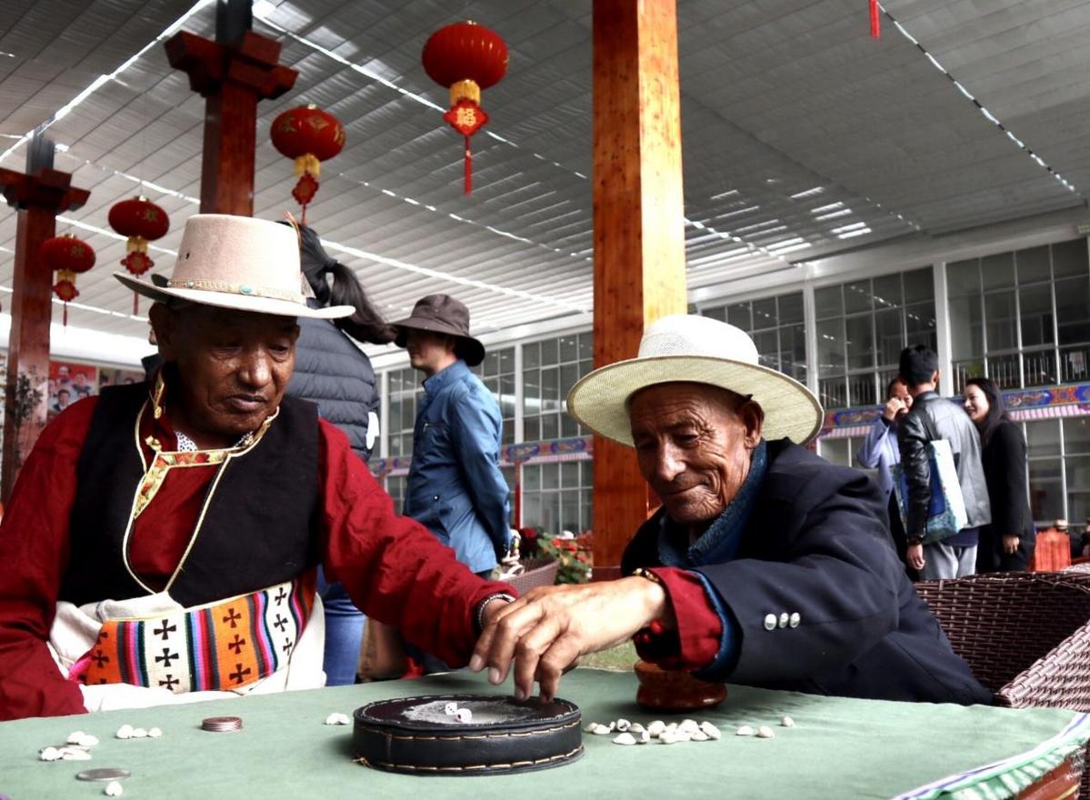 Dwaj seniorzy grają w domu opieki w tybetańskie szachy. [Zdjęcie: Palden Nyima / chinadaily.com.cn]