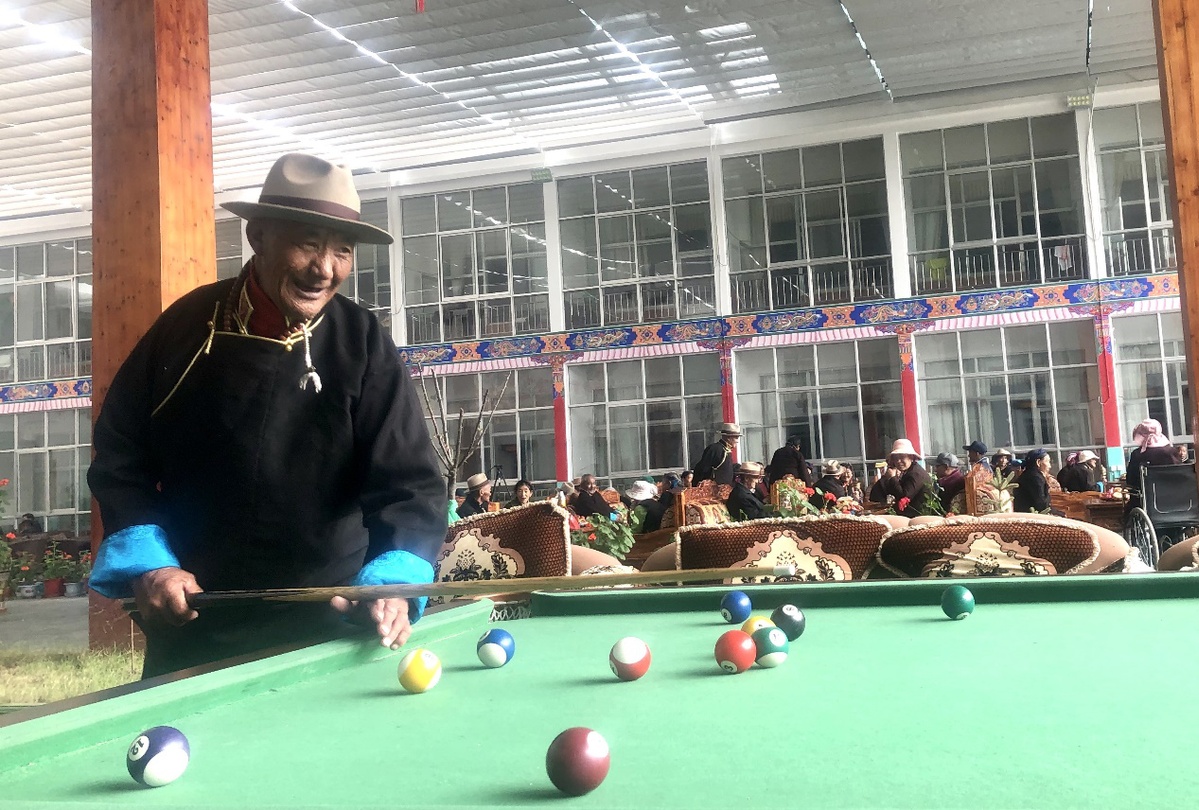 Jeden z pensjonariuszy domu opieki gra w bilard. [Zdjęcie: Palden Nyima / chinadaily.com.cn]
