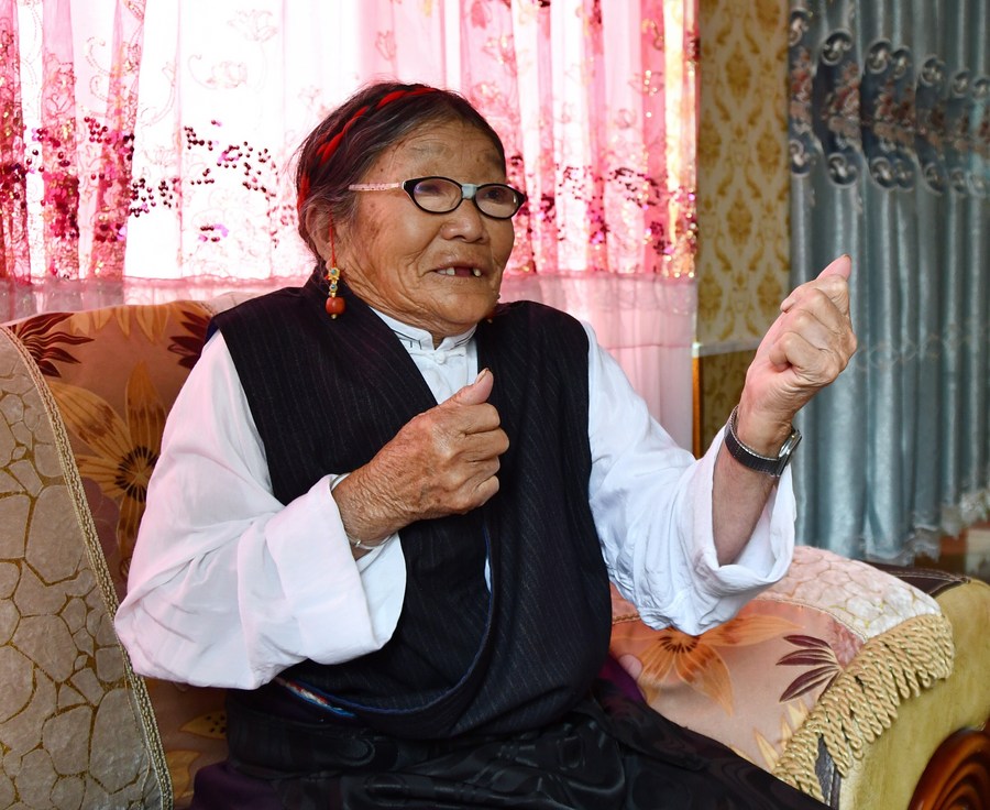 Mówiąc o przeszłości Changchub Drolma reaguje emocjonalnie. 30 lipca 2020 r. (Xinhua / Zhou Xiangji)