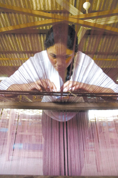 Kobieta przy krośnie w warsztacie Norlha Atelier [Foto: chinadaily.com.cn 2013]