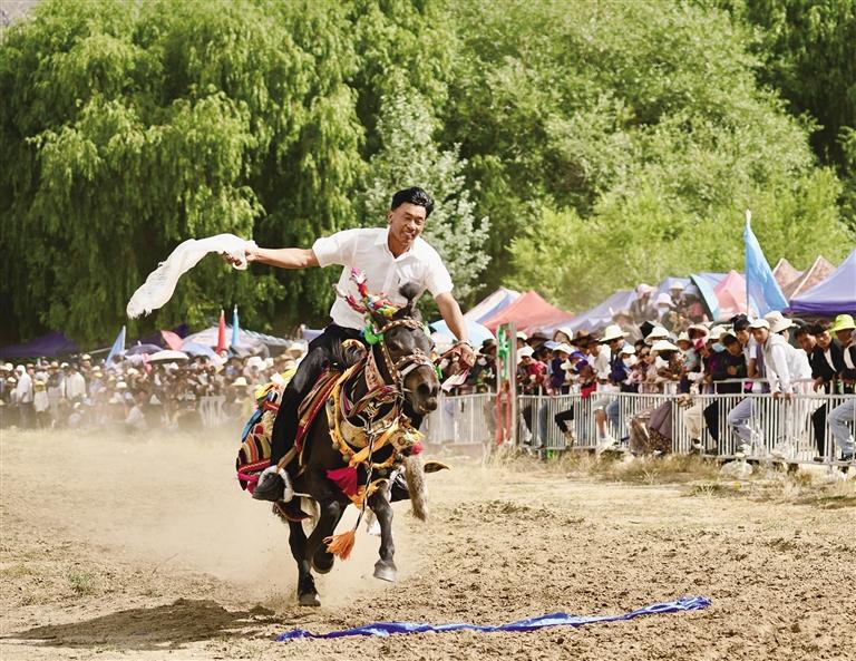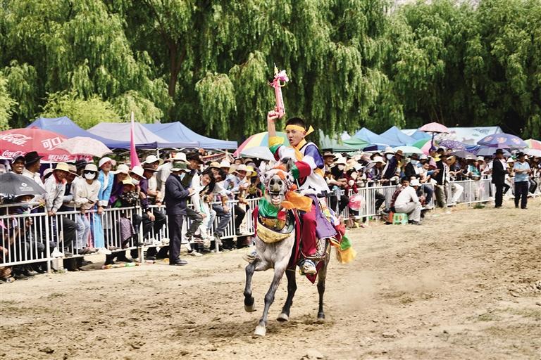 O godzinie 11:00 tego dnia oficjalnie zainaugurowano Święto Wangguo w wiosce Chabalang, na którym jeźdźcy ubrani w tradycyjne stroje, w kapeluszach z czerwonymi frędzlami, pochyleni w siodłach nad wspaniale przybranymi końmi rywalizowali w wyścigu na 4000 metrów, wyścigu podnoszenia szala hada, konkurencji strzelania z łuku na koniu, pokazach umiejętności jeździeckich i inne ekscytujących zawodach. Zebrana wokół publiczność dopingowała zawodników. Pokrzykiwaniom galopujących po torze zawodników towarzyszyły okrzyki zgromadzonej licznie publiczności.