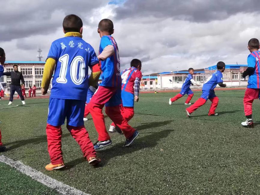 Uczniowie szkoły podstawowej w powiecie Nyanrong w autonomicznym regionie Tybetu grają w piłkę nożną. [Zdjęcie dostarczone do chinadaily.com.cn]