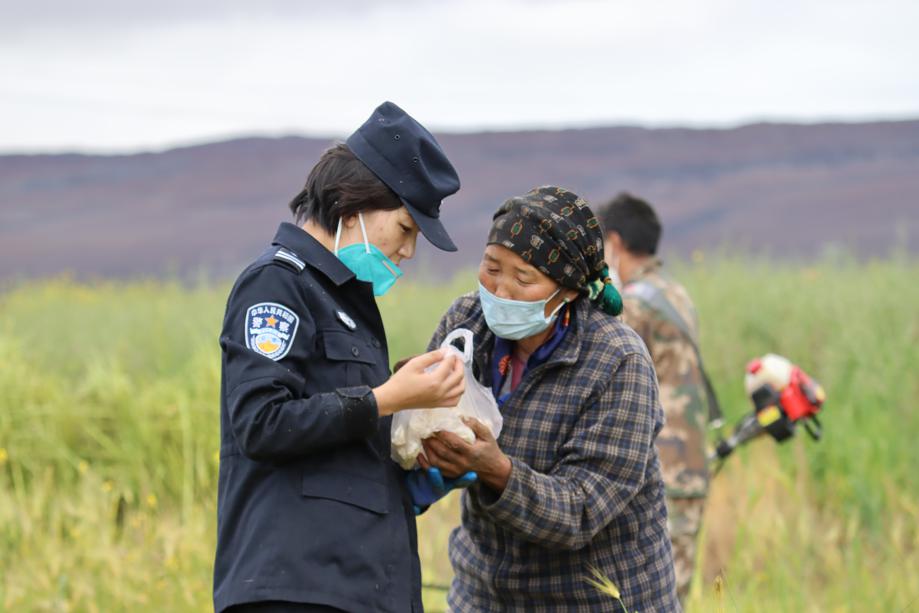 Policjanci z okręgu Dromo w Tybetańskim Regionie Autonomicznym pomagają miejscowym rolnikom w jesiennych zbiorach. [Zdjęcie dostarczone do chinadaily.com.cn]
