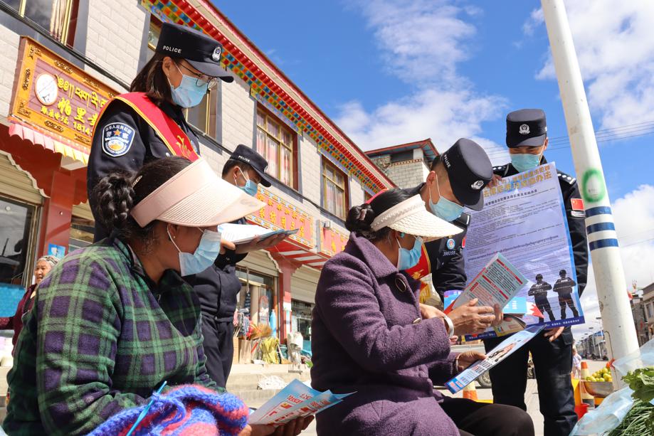 Funkcjonariusze policji w powiecie Dromo w Tybetańskim Regionie Autonomicznym pomagają miejscowym rolnikom w nauce prawa. [Zdjęcie dostarczone do chinadaily.com.cn]