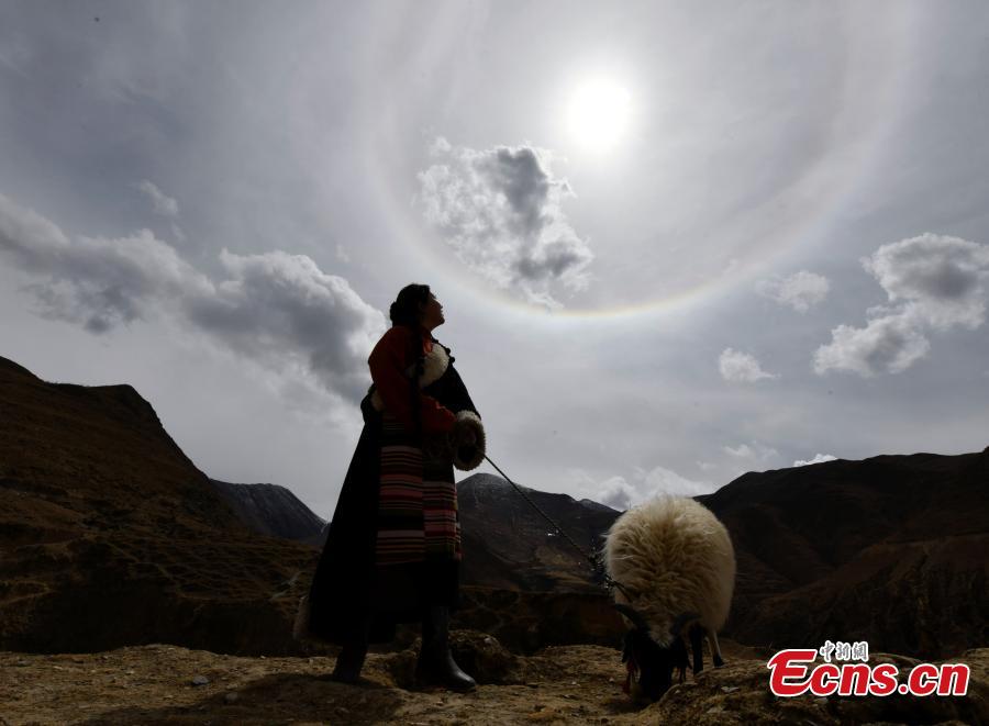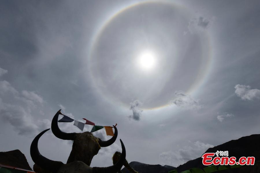20 marca 2023 roku na niebie nad Lhasą, stolicą Tybetańskiego Regionu Autonomicznego, pojawiło się niezbyt często obserwowane zjawisko optyczne: halo słoneczne (Zdjęcie: China News Service/Li Lin)