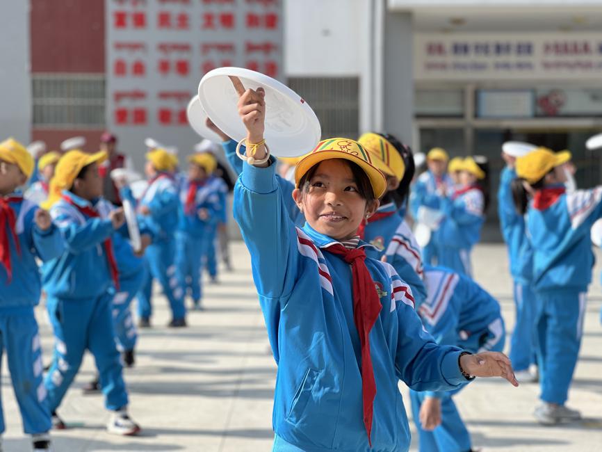 Uczniowie z oddziału Dongcheng Eksperymentalnej Szkoły Podstawowej w Lhasie lubią grać we frisbee. [Zdjęcie: Dekyi Drolma/dla chinadaily.com.cn]