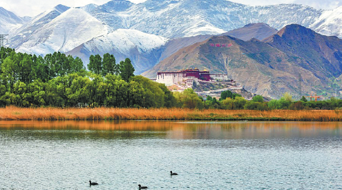 To zdjęcie zrobione w maju przedstawia mokradła Lhalu w Lhasie z Pałacem Potala w tle. Tybetański Region Autonomiczny w południowo-zachodnich Chinach zaimponował mieszkańcom kraju i zagranicy nieskazitelnym środowiskiem ekologicznym i barwną kulturą etniczną. JIANG FAN/XINHUA