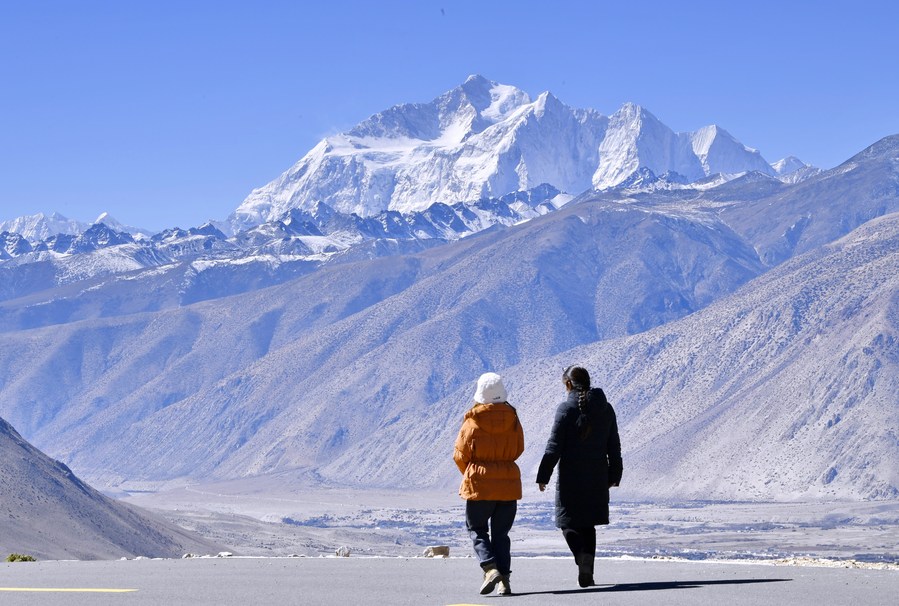 Turyści odwiedzający Park Narodowy Czomolungma w Tybetańskim Regionie Autonomicznym, 27 października 2023 r. (Xinhua/Zhang Rufeng)