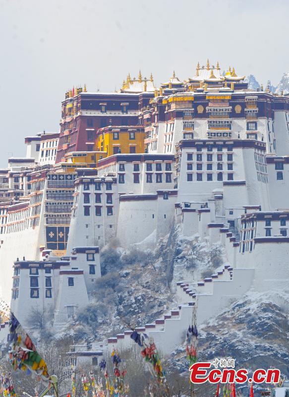 Otoczenie Pałacu Potala po opadach śniegu w Lhasie, 18 stycznia 2024 r. (Photo/China News Service)