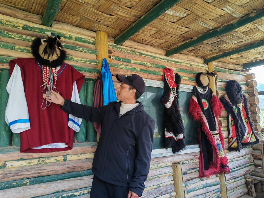 W uroczej chatce z sufitu zwisają różne wypchane dzikie zwierzęta, a na stole wystawione są prymitywne przybory, takie jak gliniane miski i bambusowe klatki rybackie. Wskazując na tradycyjne stroje wywieszone na ścianie, 52-letni Tashi przedstawia turystom bogatą tradycyjną kulturę etniczną swojego regionu.