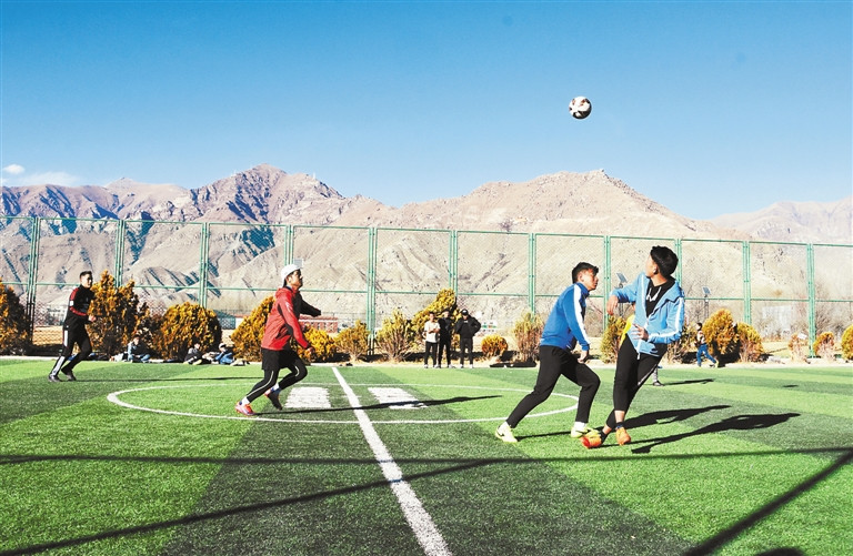 Studenci grają w piłkę nożną. [Foto/China Tibet News]