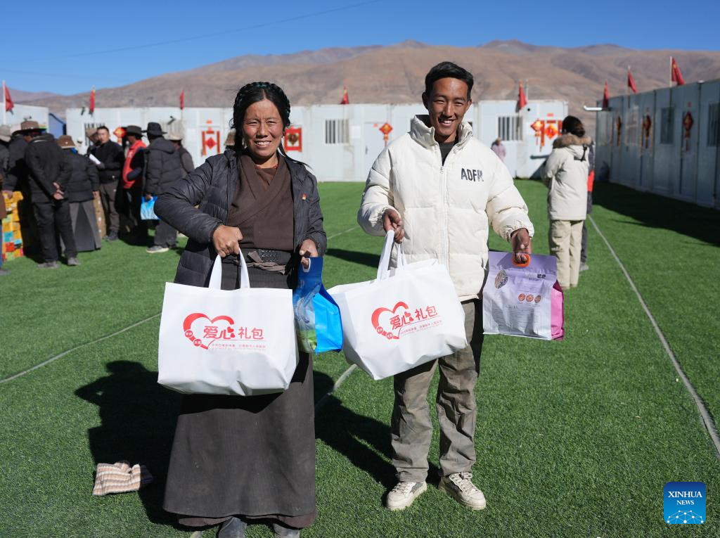 Powiat Lnaze jest jednym z powiatów poważnie dotkniętych na początku tego miesiąca trzęsieniem ziemi o magnitudzie 6,8, które nawiedziło południowo-zachodnie Chiny w rejonie Tybetu [Xizang]. Wraz ze zbliżaniem się chińskiego Nowego Roku Księżycowego i tybetańskiego Nowego Roku, mieszkańcy dotkniętego obszaru przenieśli się do nowo wybudowanych prowizorycznych domów i otrzymali paczki żywnościowe z wołowiną, liśćmi herbaty, cukrem, winem jęczmiennym itp. W miarę trwania akcji pomocowych i stopniowego powrotu życia do normy, dotknięci ludzie odczuwają ciepło i wsparcie płynące ze wszystkich stron. (Xinhua/Jigme Dorje)