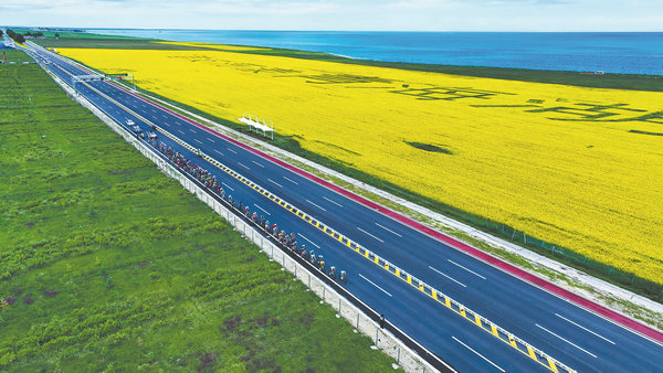 Nad brzegami jeziora zakwitł rzepak. [Zdjęcie udostępnione China Daily]