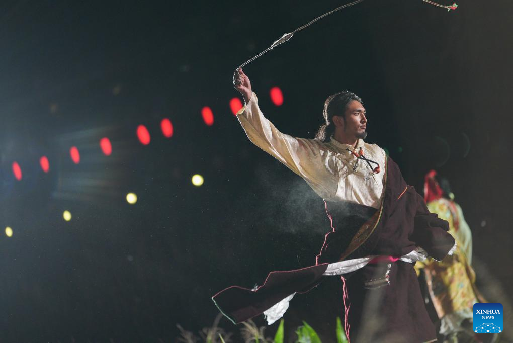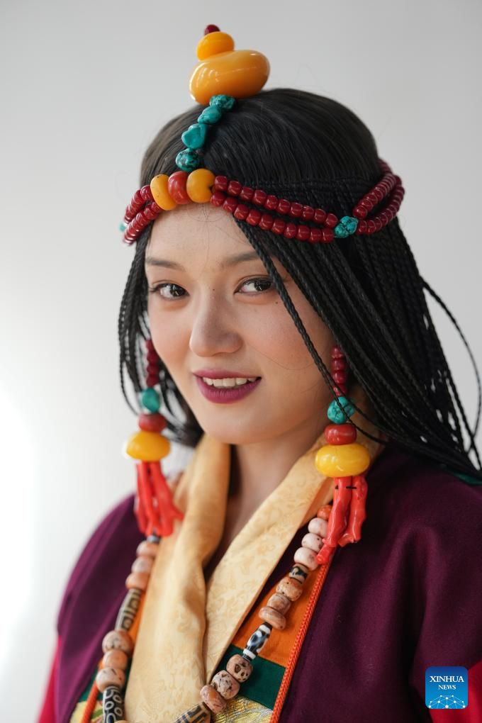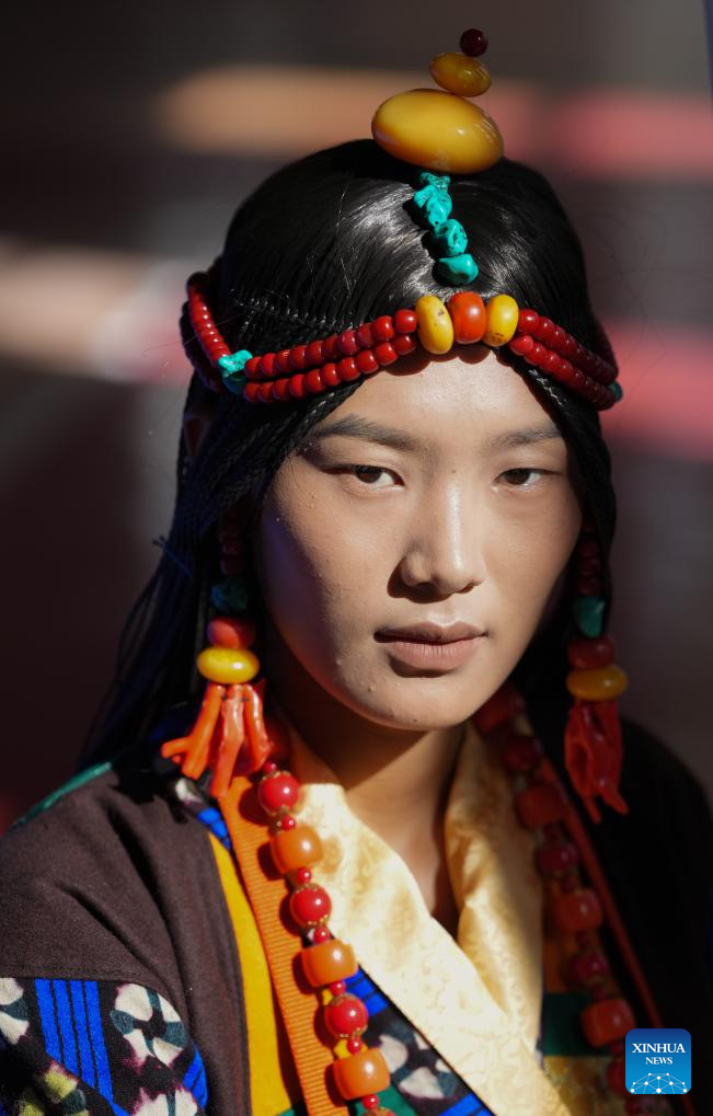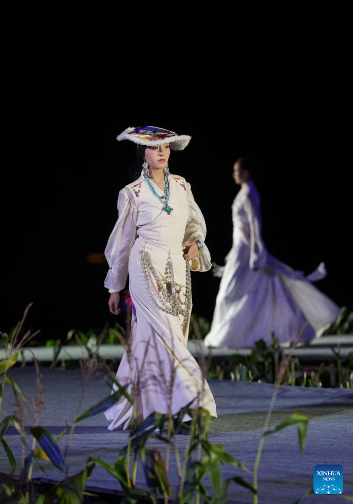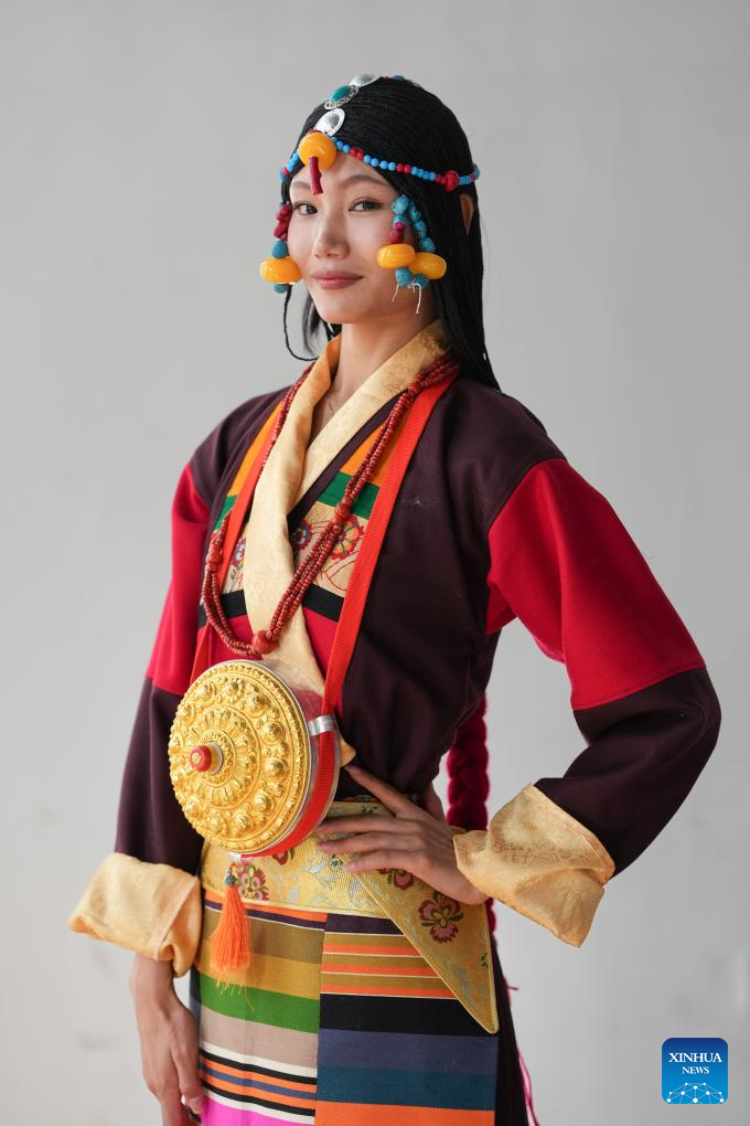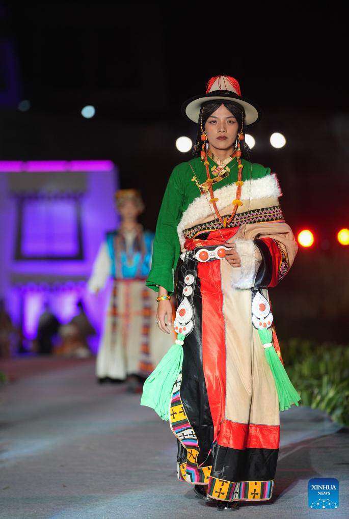 0 września 2025 r. Kobieta prezentuje tradycyjny strój tybetański na pokazie strojów tybetańskich w wiosce Zhongde w powiecie Xiangcheng, w Tybetańskiej Prefekturze Autonomicznej Ganzi, w prowincji Syczuan w południowo-zachodnich Chinach. Pokaz, łączący tradycję z nowoczesnością, odbył się w sobotę na polu kukurydzy. (Foto: Xinhua/Jiang Hongjing).