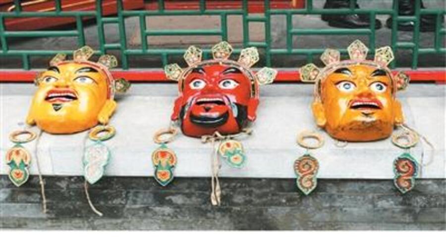 Zdjęcie przedstawia maski używane przez wykonawców tańca Czam. (Zdjęcie uzyskane dzięki uprzejmości Yu Chao)