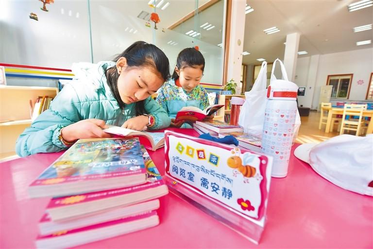 Tenzin Kangzhu, uczennica szóstej klasy z eksperymentalnej szkoły podstawowej w Lhasie, podczas wizyty z przyjaciółką w bibliotece - 4 stycznia 2018.