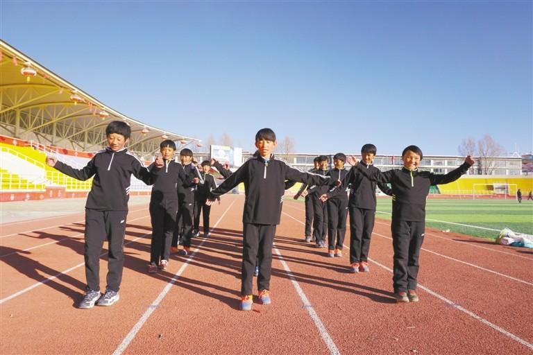 Młodzi piłkarze na treningu podczas zimowego obozu szkoleniowego w Shigatse