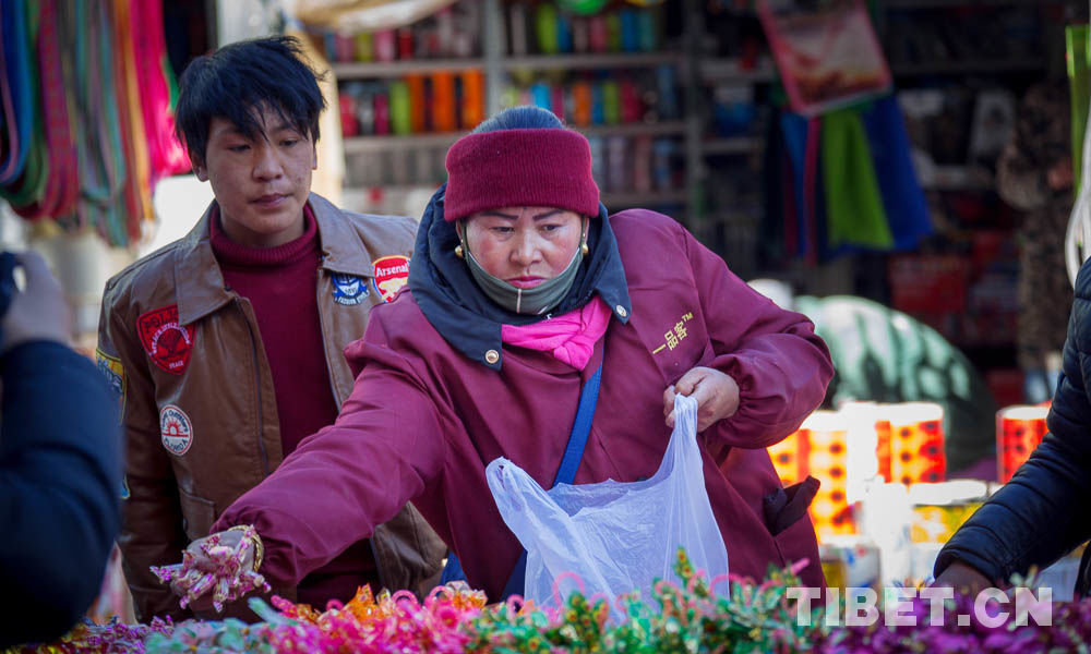 Tybetański Nowy Rok i Święto Wiosny przypadają w tym roku tego samym dnia - 16 lutego, nie dziwi zatem, że ludzie są zajęci przede wszystkim zakupami najpotrzebniejszych noworocznych artykułów. Na noworocznym jarmarku Zetang w Shannan wystawiono na półkach wiele różnych towarów. Przekrzykiwania sprzedawców i odgłosy toczonych targów słychać na całym ruchliwym rynku.