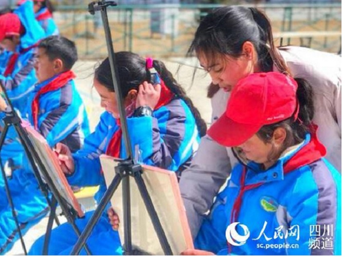 Poniższe fotografie przedstawiają dzieci na zajęciach pozalekcyjnych w Pałacu Dzieci utworzonym w ich szkole znajdującej się w gminie Tsango w powiecie Lithang w Tybetańskiej Prefekturze Autonomicznej Garze, w prowincji Syczuan . [Foto / people.com.cn]