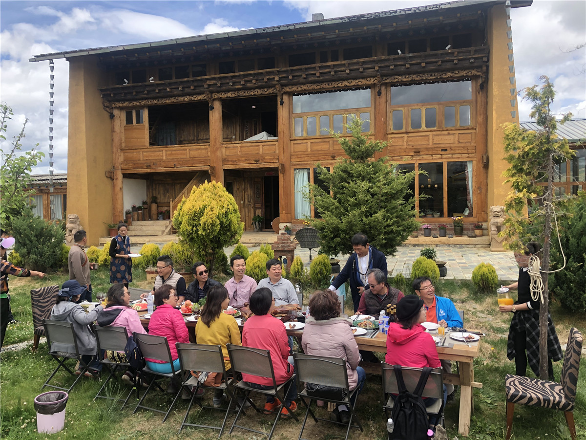 Goście delektują się posiłkiem na dziedzińcu domu Dakpy Keldena we wsi Shangri-La. (Zdjęcie: CHINA DAILY)
