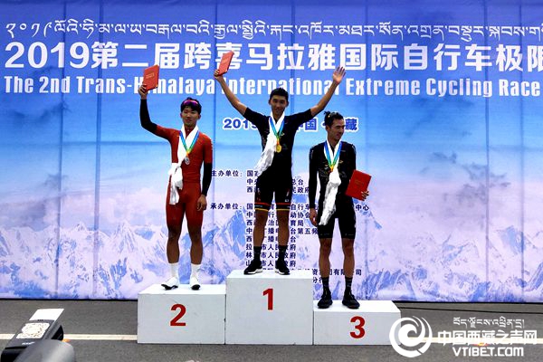 Zwycięzcy drugiego etapu drugiego międzynarodowego wyścigu kolarskiego Trans-Himalaya. (Zdjęcie: VTIBET.com).
