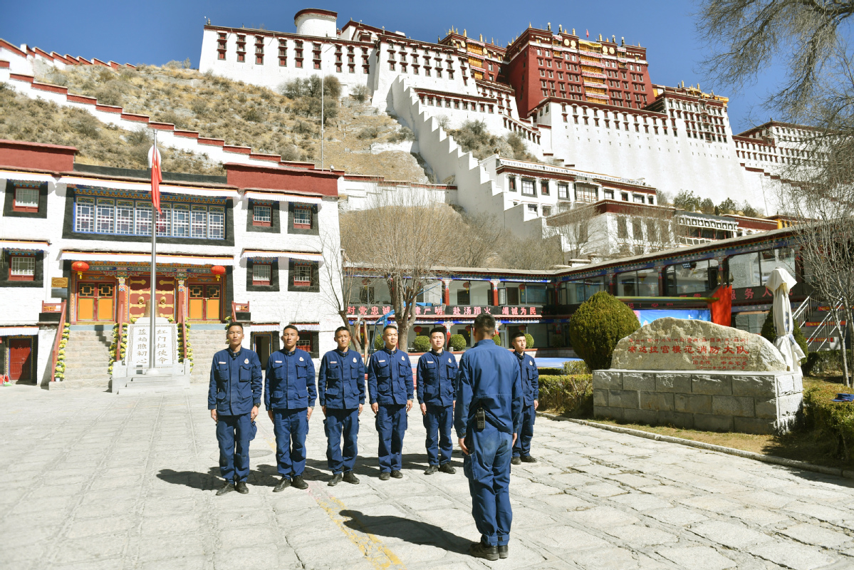 Strażacy patrolują Pałac Potala przez ponad 10 godzin dziennie, a każdy z nich przechodzi średnio ponad 25 000 kroków.