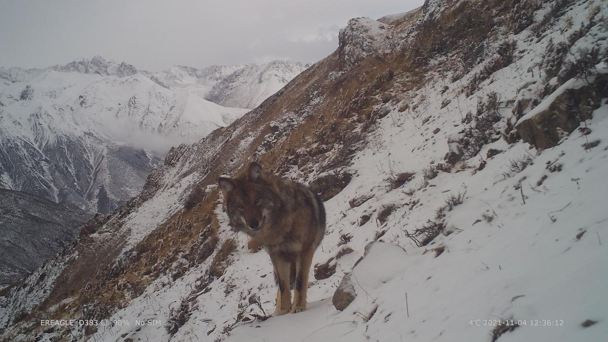 Wilk złapany w "fotopułapkę". Zdjęcie wykonane w dolinie rzeki Nujiang w powiecie Dengchen w Tybetańskim Regionie Autonomiczny. [Zdjęcie dostarczone do chinadaily.com.cn]