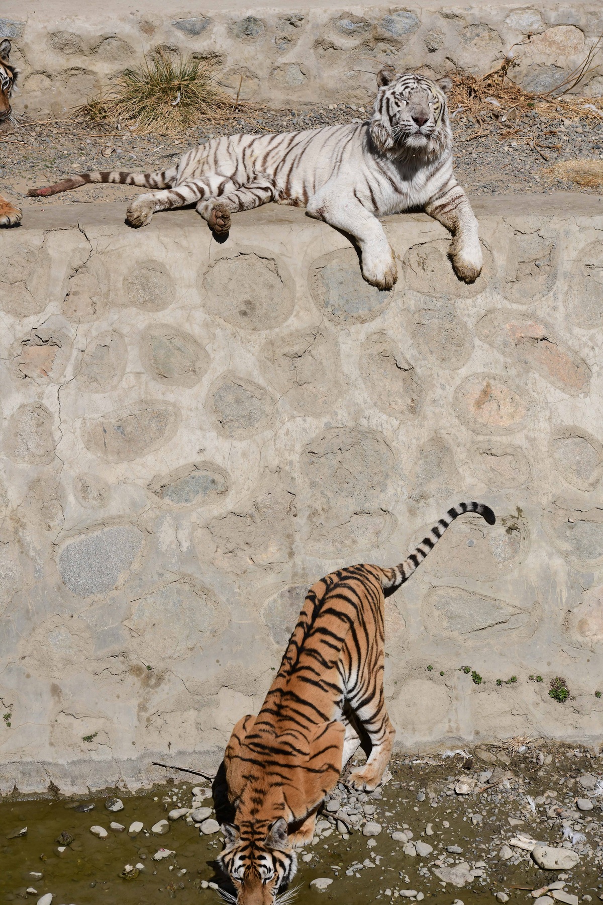 Dwa tygrysy w ZOO Chushul . [Zdjęcie autorstwa Kunga Lezang/China News Service]