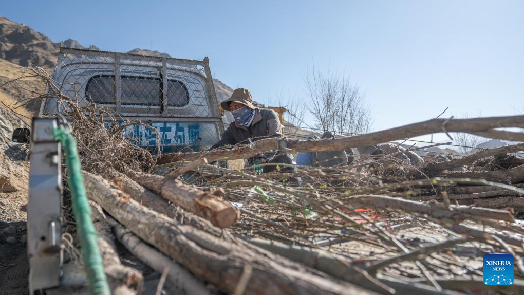 Mieszkaniec osiedla Donggarr przywiózł sadzonki w Lhasie, 12 marca 2024 r. (Xinhua/Tenzin Nyida)