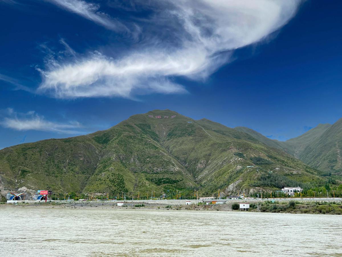 Bezpośrednio na południe od Pałacu Potala, zielone południowe góry zwrócone są w stronę obszaru miejskiego po drugiej stronie rzeki, z krzewami i drzewami przeplatającymi się na zboczach gór, tworząc bujny las.