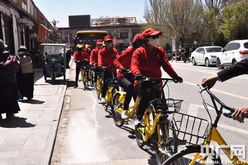 Nowe żółte rowery poruszające się po ruchliwych ulicach Shigatse takich jak Qingdao, Szanghajskiej, Zhufeng czy innych wywołują wielkie zainteresowanie.
